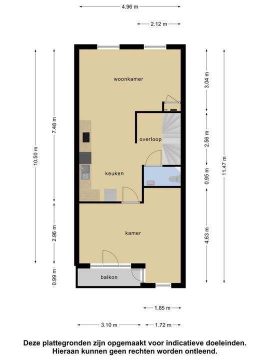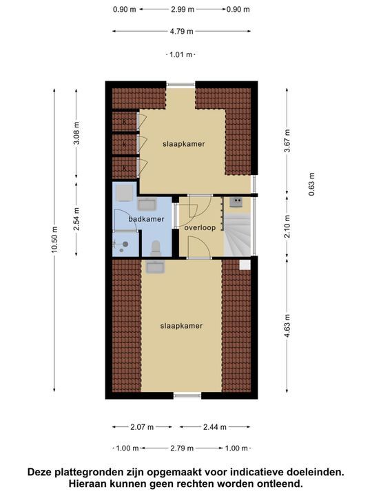 Voor de exacte afmetingen en indeling zie de plattegrond.